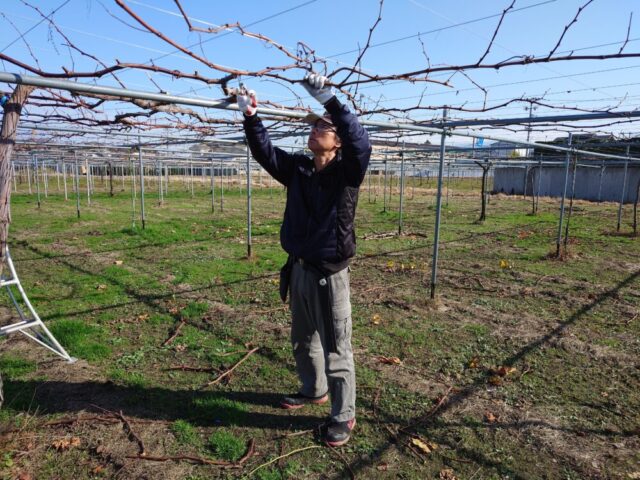 ブドウの状況 2025/11/30 2025年11月30日(日) 只今、当園では、剪定作業の真っ最中です。ぶどう栽培で一番重要で大事な作業がこの剪定作業です。ぶどうの出来や収穫量がこの剪定作業で決まると言っても過言ではないです。なので一枝一枝、しっかり見極めての作業になるので少し時間のかかる作業でもありますが、私は、この剪定作業が一番大好きな作業でもあります。来シーズンの最高に出来の良いぶどうをイメージして、ワクワクドキドキしながらやってます(笑) 前の記事 一覧に戻る